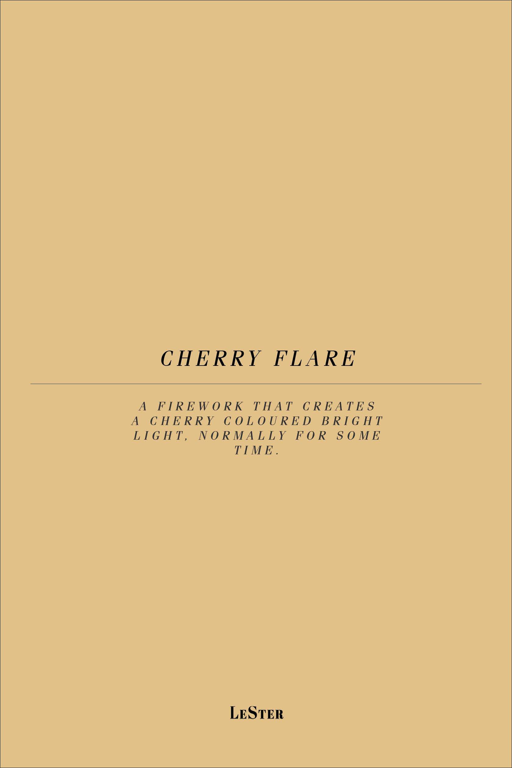Cherry Flare: A firework that creates a cherry coloured bright light, normally for some time.