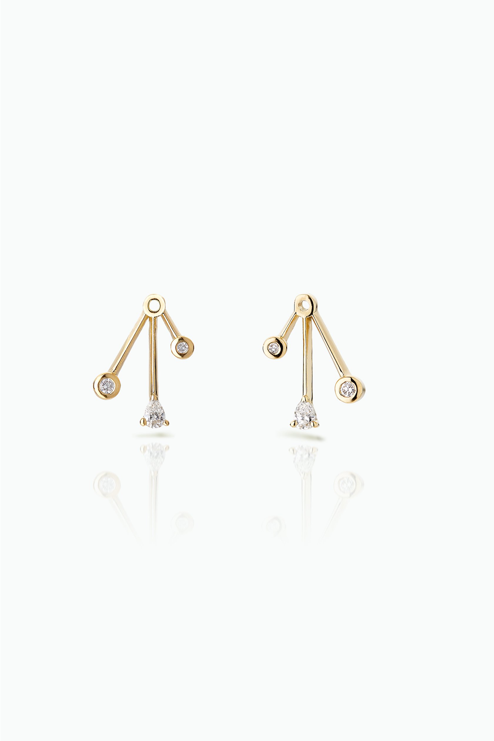 Modern, Elegant and Versatile Earjacket that can Turn Any Stud Earring into a Subtle yet Statement Piece. Handcrafted in 18 Carat Yellow Gold with Brilliant Cut Round and Pear Diamonds.