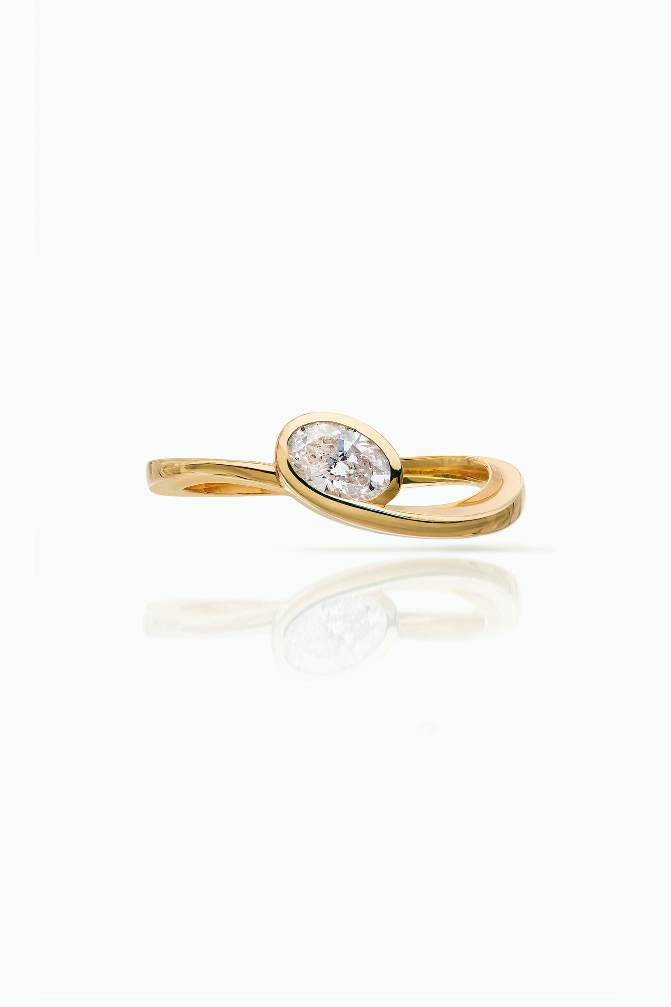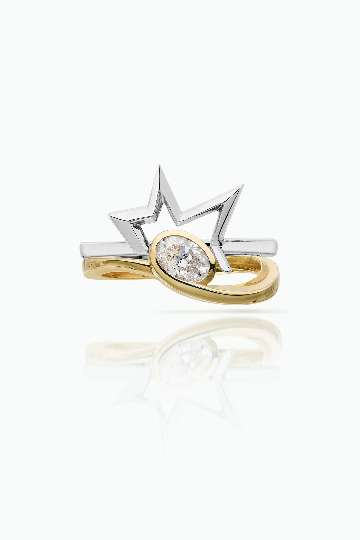 A modern, alternative engagement ring and wedding band design featuring a brilliant cut oval lab grown diamond 0.5ct